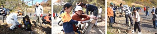 プログラムは記念植樹で幕を開けました。参加者は白河の自然を見て触れて学び、自ら薪を割り、薪で焼いた食材を食す体験をしました。この一連の実体験を通じて、