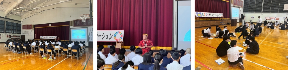 日本キリバス協会のケンタロ・オノ氏による講演では、キリバス共和国の歴史や文化、衣食住に関する基礎的な理解を深めるとともに、同国が直面する気候変動の影響や将来的な課題、それに対する緩和策・適応策について学ぶ機会となりました。後半のあきた地球環境会議・福岡氏によるワークショップでは、「大曲南中学校の校長先生になったら」をテーマにペルソナワーク※を行い、生徒が主体的に学校での取組やキリバス共和国との交流について考え、意見を共有しました。